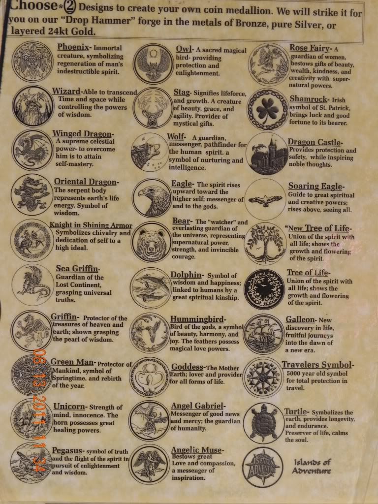 Continuing on our way to the Wizarding World of Harry Potter, I happened to pass this piece of paper on a post next to a store. I found it pretty interesting and thought you guys might like it too, so I made sure to take a pic. It’s designs for a coin medallion. I was really tempted to buy that Traveler’s Symbol one, because, you know, it’d help me feel more in character when I’m writing posts for Elliot D: I couldn’t find it on display though, so I figured they were out. Sadness!