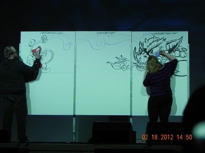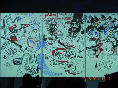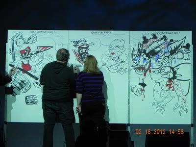 There were tons of other great costumes too, like from Howl's Moving Castle, Dr.Who, etc. It was, as my dad said, "like being in an alternate universe." There were also lots of events and movies to watch. One of the events we'd went to was called Super Art Fight, where two players draw on a big canvas, and every 5 minutes a new theme comes up that they have to incorporate in the picture, making for some...interesting pictures XD